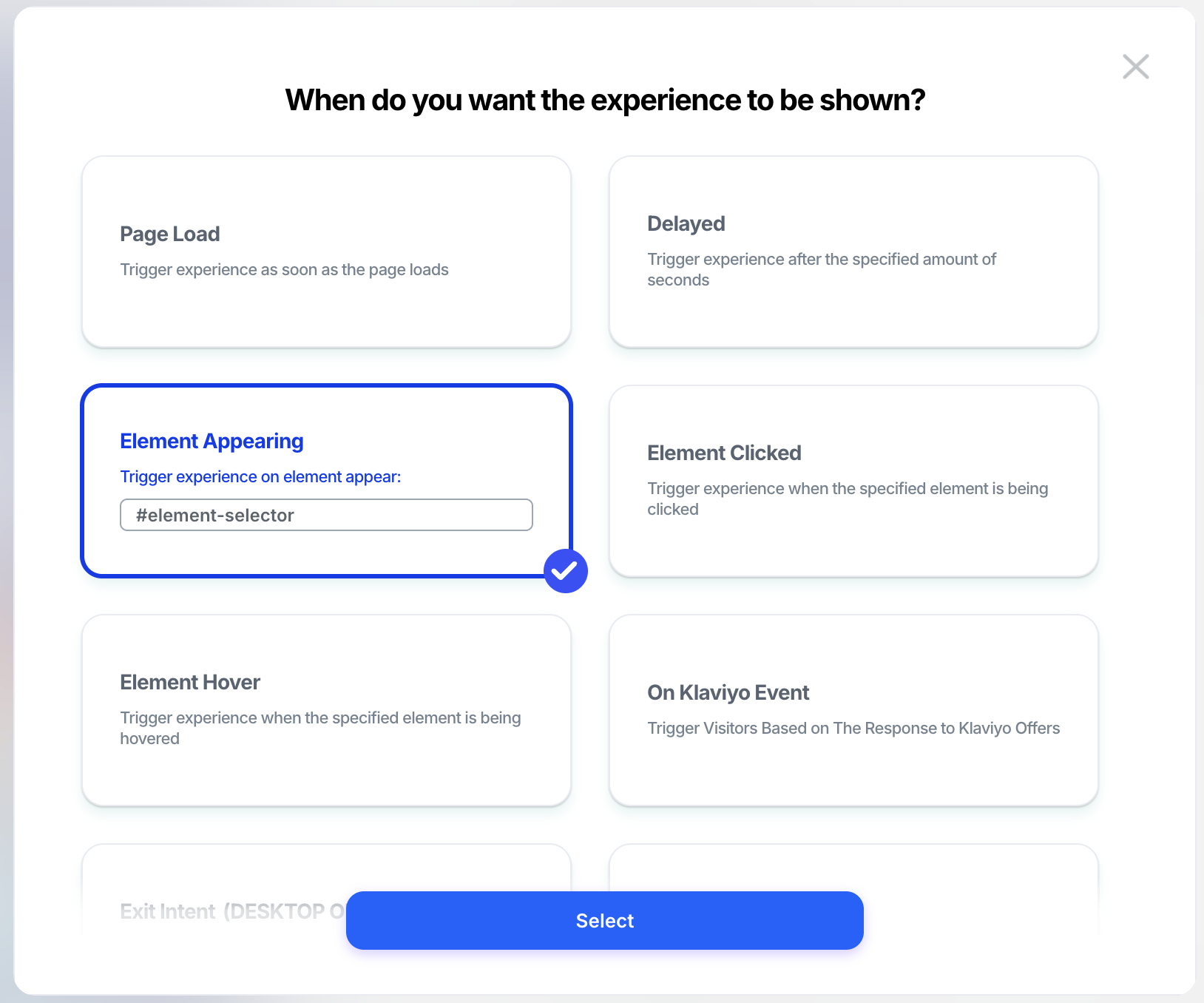 - Apply an experience trigger for "element appearing" and choosing a selector that is exclusive to 404 pages.